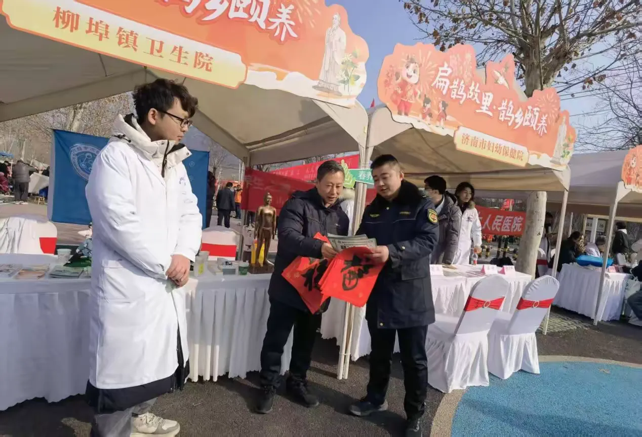 活动现场精心设置多重趣味环节,兼顾知识性与互动性。“绿马甲”志愿者与书法爱好者联袂登场,挥毫泼墨书写融合垃圾分类理念的特色春联,“分类有道添福气,低碳生活迎新春”等寓意吉祥的作品,让居民在收获新春祝福的同时,将环保知识牢记心间。针对“源味南山年味大集”“中医药文化惠民活动”等人流密集的特点,志愿者们向各单位工作人员、居民发放《山东省生活垃圾管理条例》明白纸、分类宣传彩页,用“瓜果皮核绿桶进,铁盒纸盒蓝桶收”的通俗口诀,详解四分类标准与投放技巧。